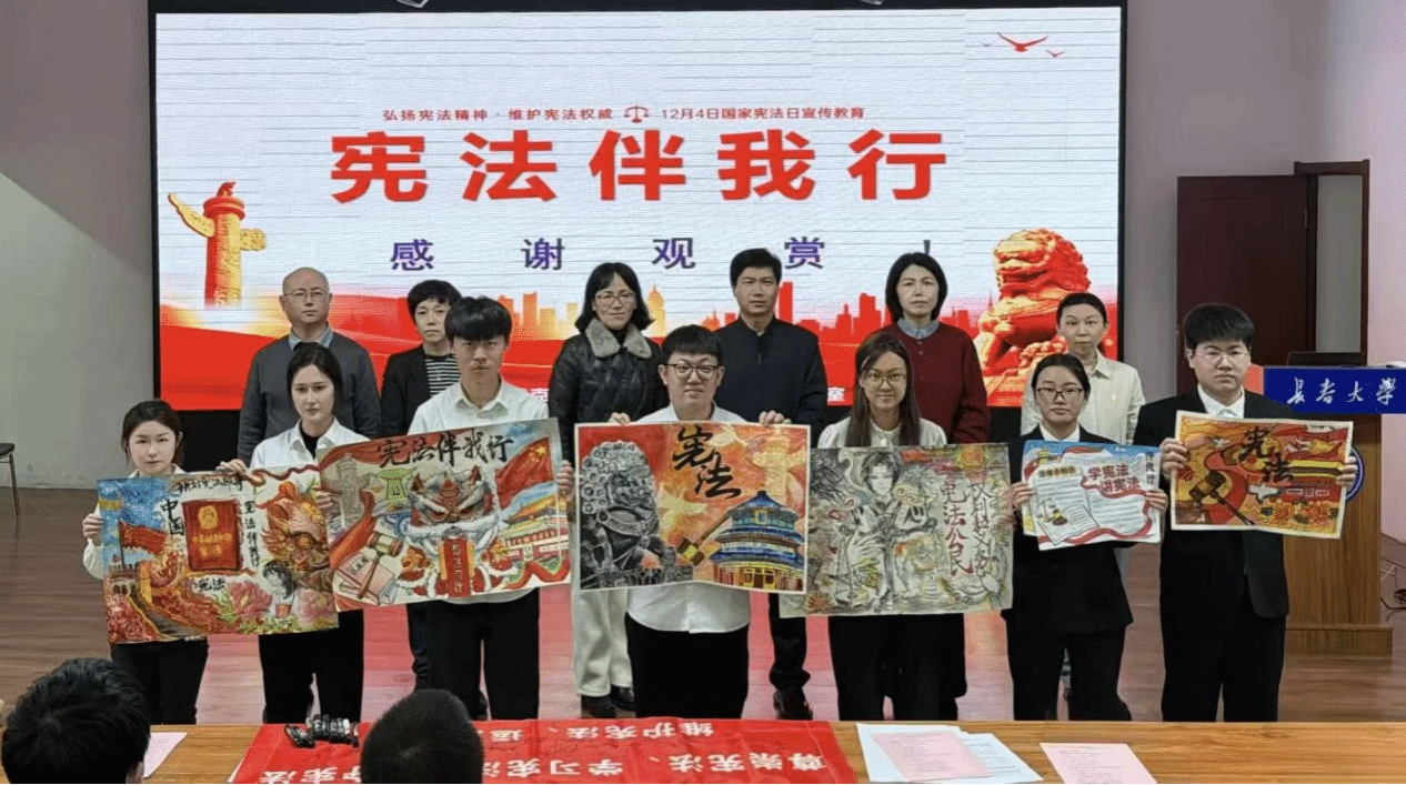 为了深入学习宣传贯彻习近平法治思想,推动宪法深入人心,大力弘扬宪法精神,在第十二个国家宪法日宣传月,2025年12月10日下午,马克思主义学院举办“宪法伴我行” 思政社会实践优秀作品展示活动,让长大学子感受宪法的权威,感悟宪法护航我们成长成才的意义。