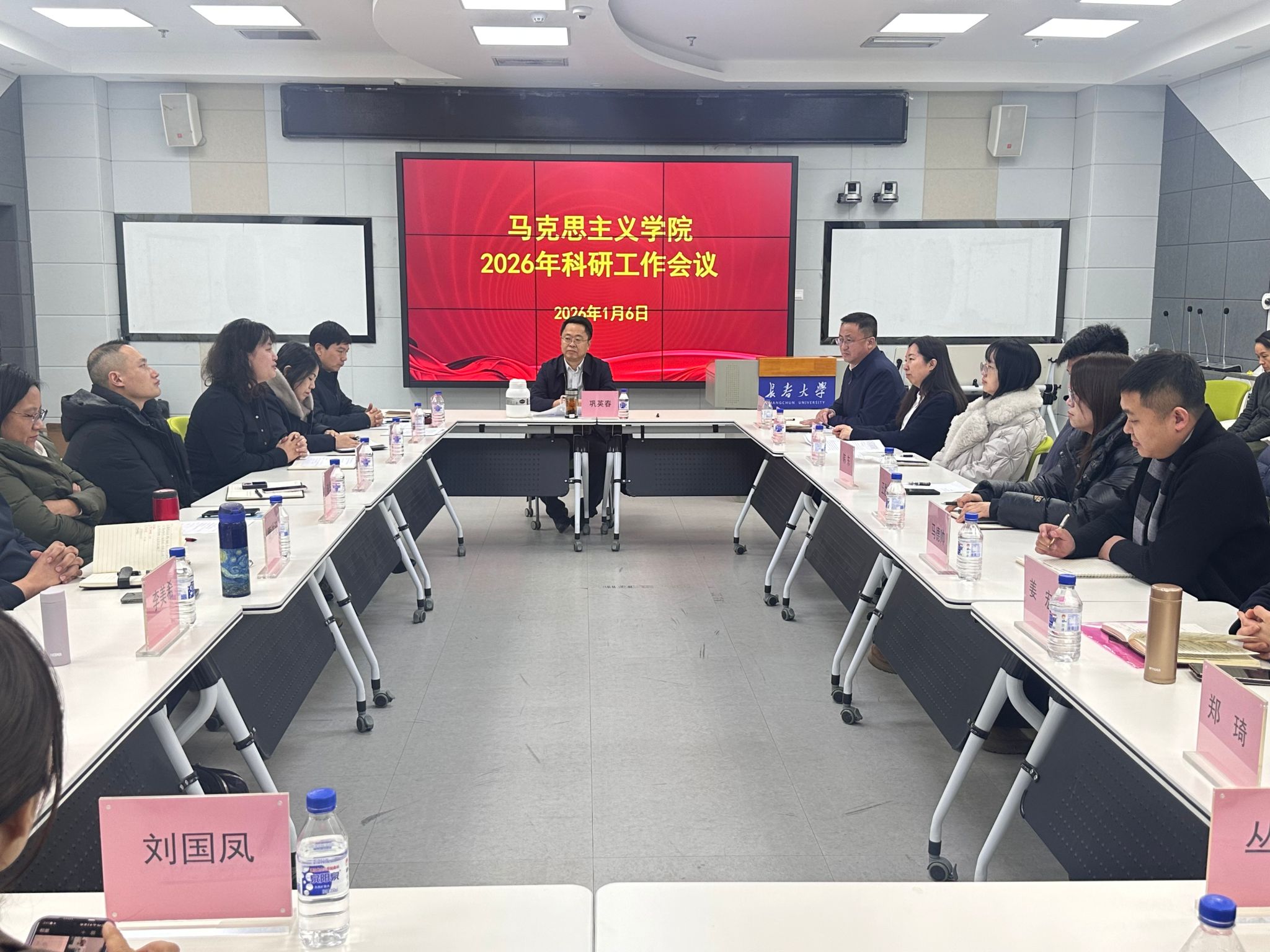为系统总结2025年度科研成果,科学部署2026年科研任务,1月6日下午,马克思主义学院在知行楼A401会议室召开2026年科研工作会议。学校党委副书记巩英春出席会议并讲话。会议由学院党委书记李贵海主持。